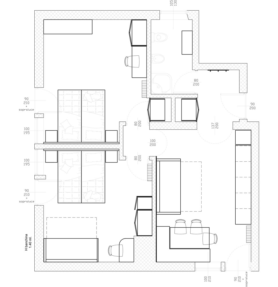 zona giorno con divano letto per 2 persone, non matrimoniale, angolo cucina attrezzato con forno a microonde e lavastoviglie, bagno finestrato con doccia e antibagno, senza terrazzo/balcone, comodo ingresso direttamente dall’esterno.